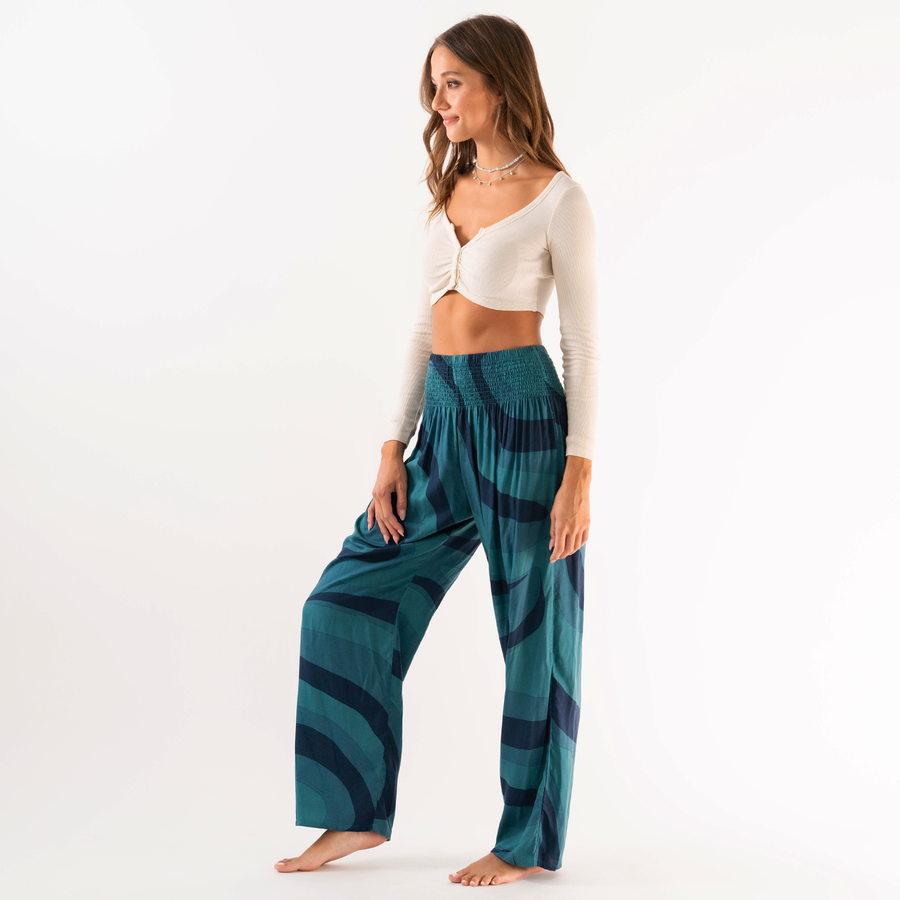 Feel Free in the Comfiest Pants on Earth! Featuring our buttery soft fabric, a smocked high waistband and flowy fit from the knee down.