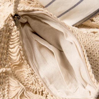 Channel your inner Bohemian and carry everything you need while looking chic with our handmade macramé tassel crochet handbag!